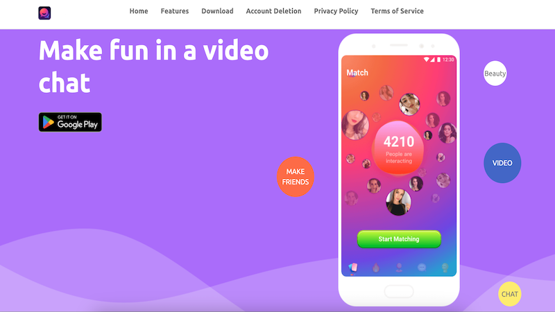 - Provides anonymous video chat